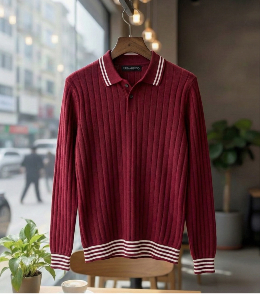Old money full sleeve maroon polo